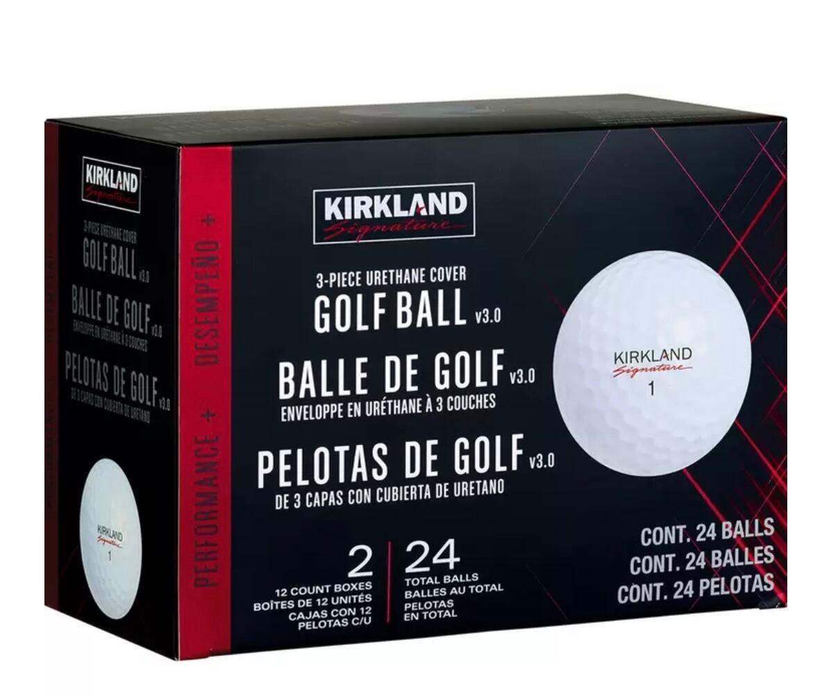 カークランドシグネチャー3ピースウレタンカバーゴルフボール「パフォーマンスプラス」は、12個入りのボックスが2箱セットになっており、合計24個のボールが含まれています。