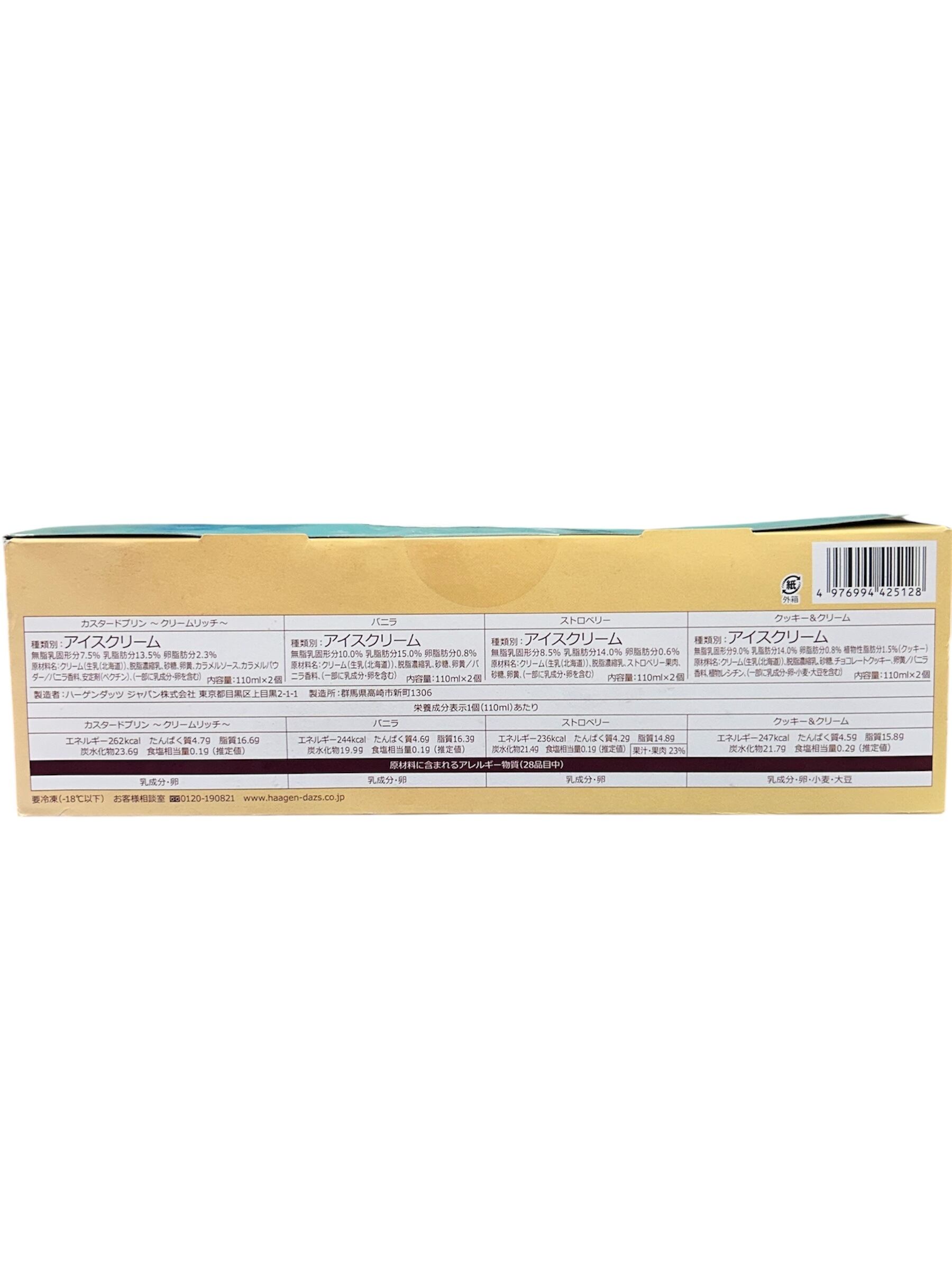 ・フレーバー:カスタードプリン、バニラ、ストロベリー、クッキー&クリーム(各2個)