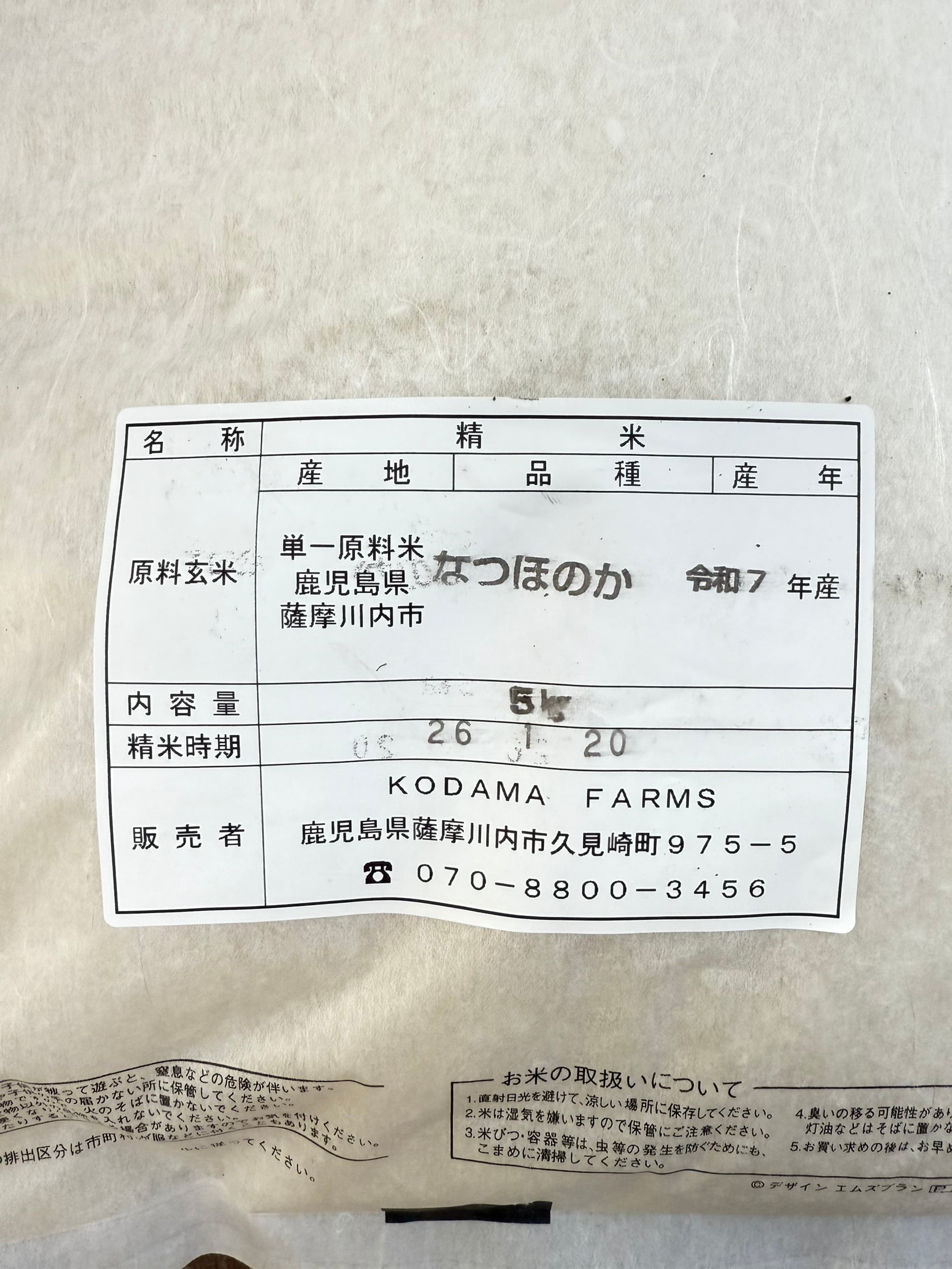 鹿児島県産 新米 令和7年度産 なつほのか 5kg